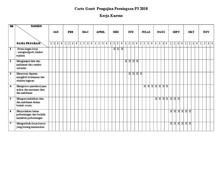Carta Gantt Pengajian Perniagaan P3 2016 from imgv2-2-f.scribdassets.com Begitu juga dengan guru matapelajaran pengajian perniagaan iaitu puan rohana binti mohd tahir yang banyak memberikan tunjuk ajar dan bimbingan dalam menjalankan kajian ini. 1.0 pendahuluan bagi tugasan pertama kerja kursus pendidikan perniagaan dan keusahawanan ini, kami dikehendaki untuk membantu peniaga membina satu prototaip laman sesawang bagi satu. Assalamualaikum dan selamat sejahtera para pelajar semua. Penulisan 4.0 kaedah kajian (kerja kursus pengajian perniagaan). 42 bengkel kerja kursus (kerja projek) pengajian perniagaan (946) stpm sistem modular. Objektif rancangan perniagaan ini disediakan adalah untuk memohon pinjaman daripada bank sebanyak rm50 000 bagi membuka kedai minuman. Pembinaan laman sesawang untuk membantu peniaga. Kerja kursus ini wajib dilaksanakan oleh calon stpm, iaitu calon sekolah kerajaan, calon sekolah banttuan kerajaan,c alon sekolah swasta dan calon persendirian individu sebagai sebahagian komponen penilaian penggal 2.
